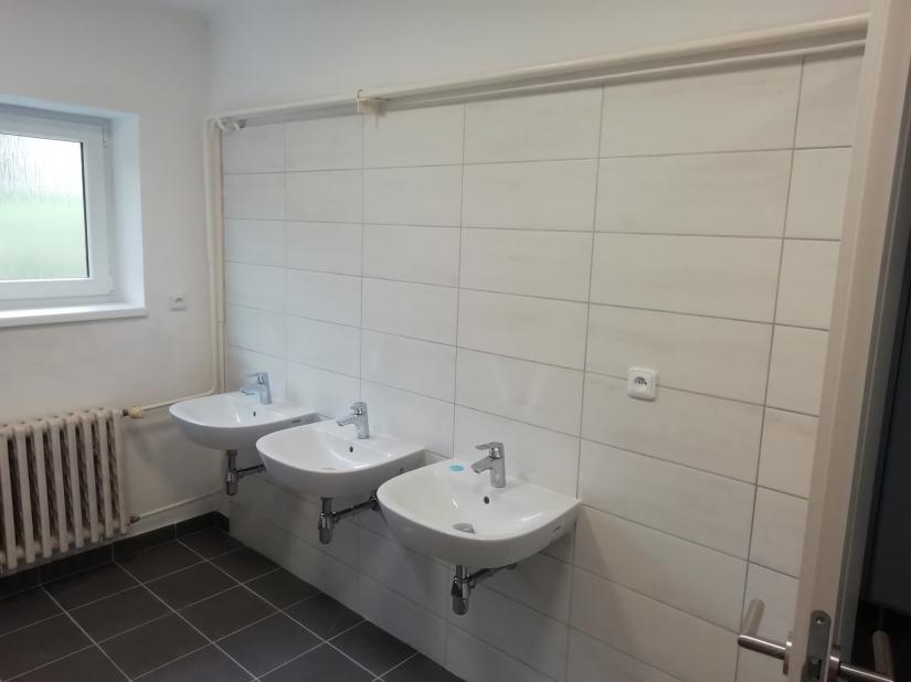 Jednalo se o výměnu vodovodního a odpadního potrubí, byla položena nová dlažba a obklady, osazeny nové toalety, umyvadla, sprchy, lavičky, věšáky, okna, zárubně a dveře, natřeny radiátory, obnoveny omítky, vytvořeny stropy ze SDK, dále byla vyměněna svítidla, vypínače a zásuvky včetně elektroinstalace